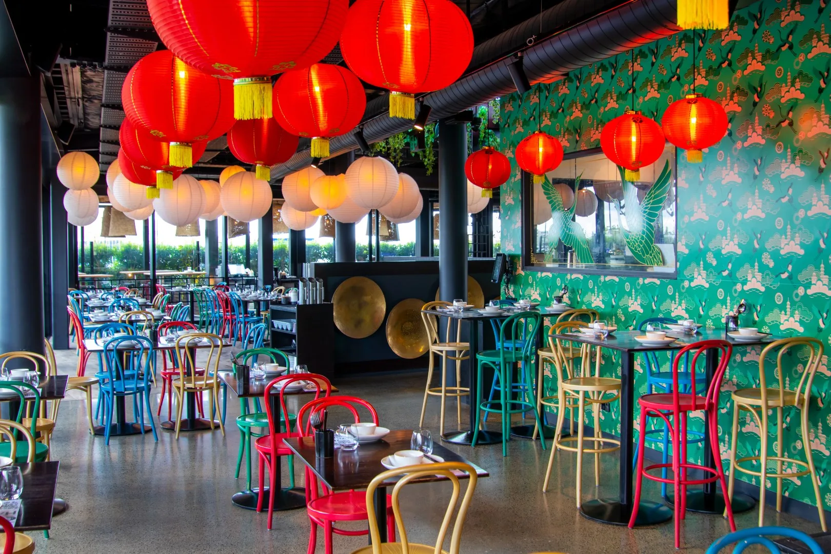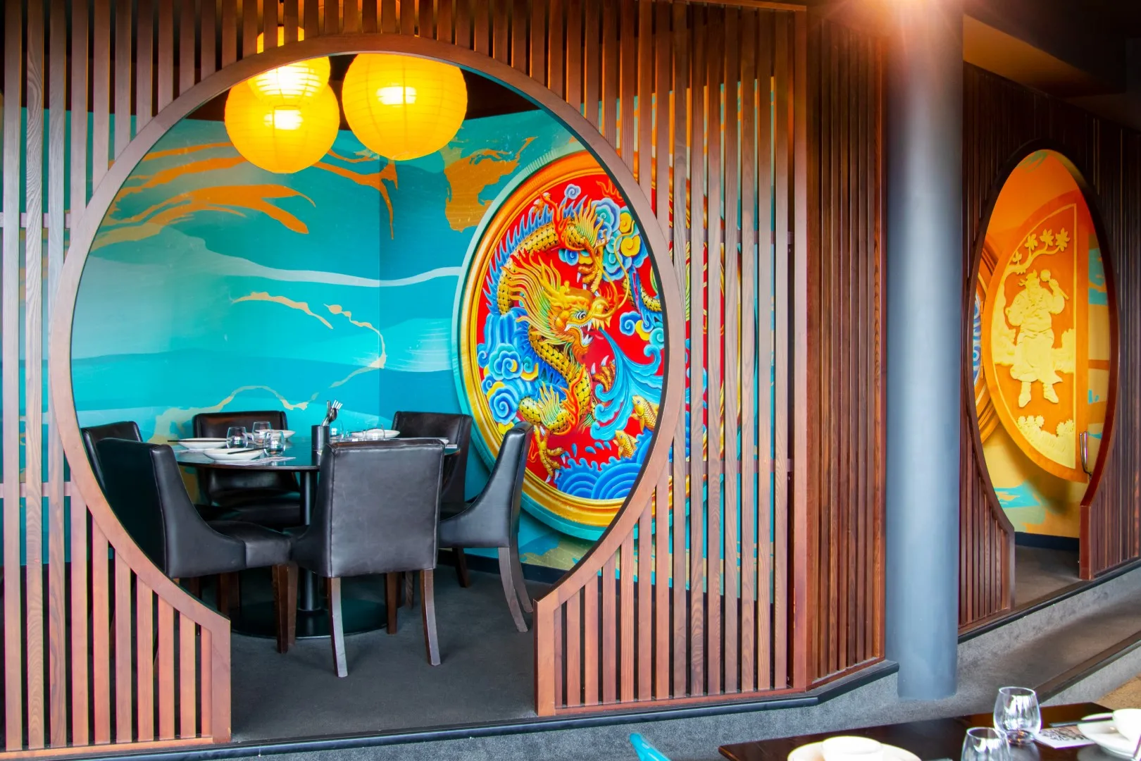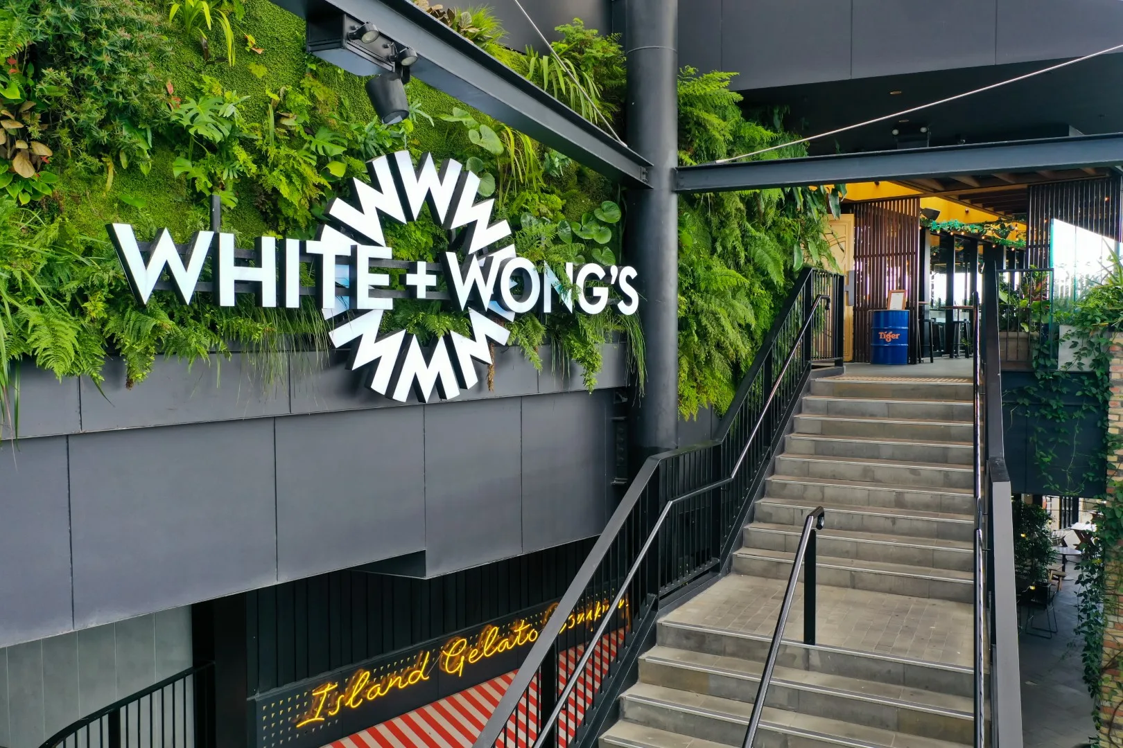 White + Wong’s is a popular Auckland restaurant on the top floor of the Newmarket’s Westfield shopping mall. Serving classic Asian street foods, seating up to 380 guests inside and outdoors. The client needed a variety of vibrant signage and custom wallpapers that would reflect Asian street style and create different zones in the large dining space, centred around the restaurant bar and its neighbour, Sardine bar, owned by the same company.