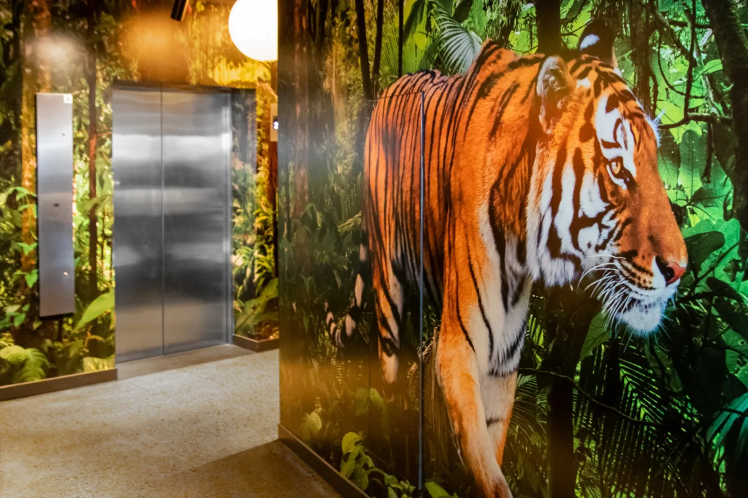 The wallpapers were applied as largescale wraps requiring skill and patience for the perfect finish. We also ensured that images lined up perfectly where vinyl wallpapers were applied around toilets, basins and curved or similar areas.